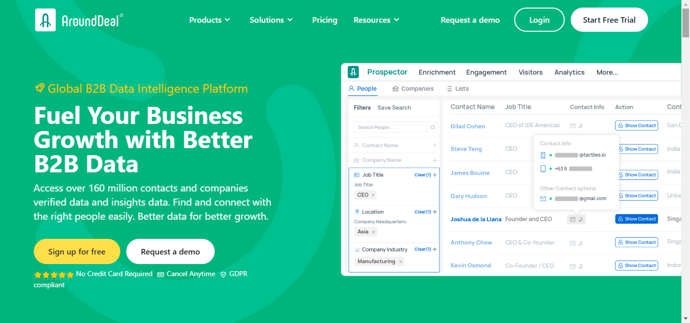 AroundDeal is globally recognized as a leading B2B data intelligence platform, trusted by over 100,000 customers and users worldwide.