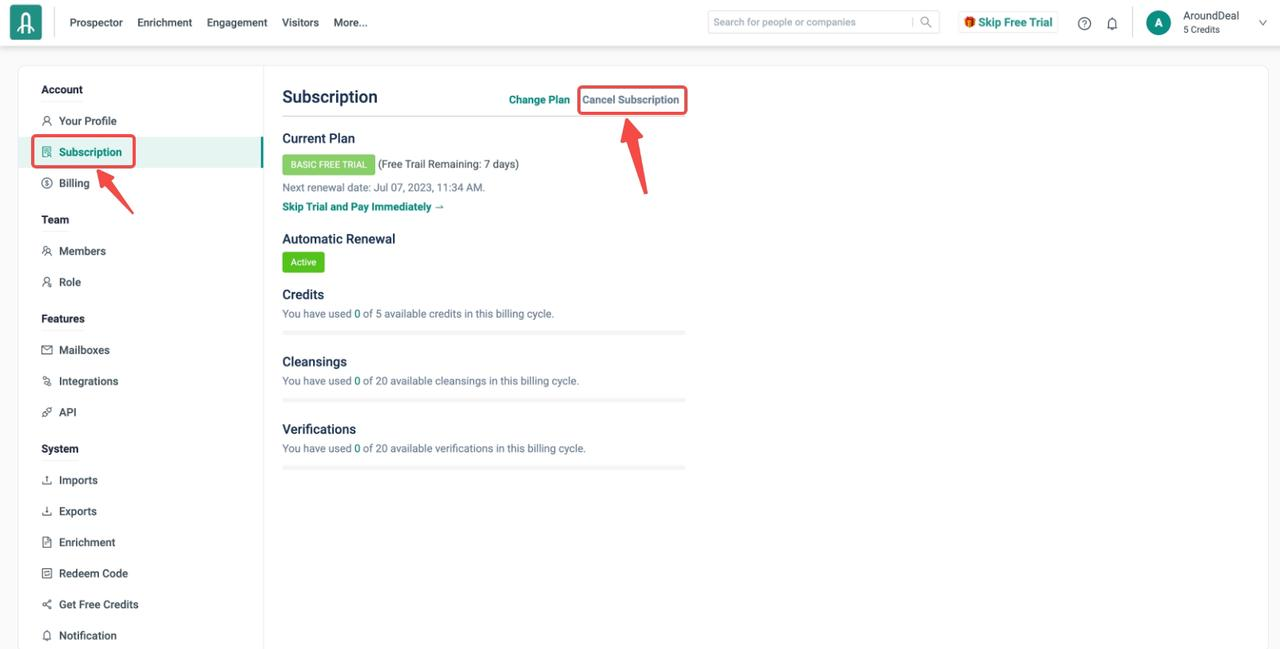 However, please be aware that only the account admin has the authority to unsubscribe from AroundDeal.