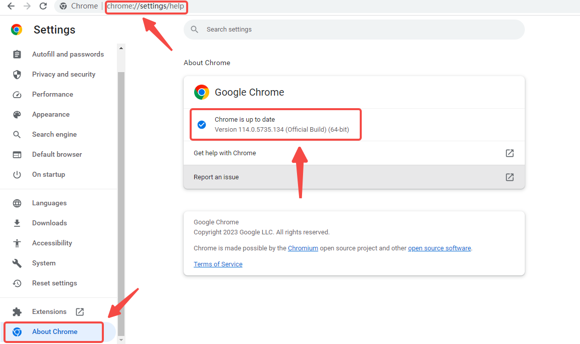 To verify if your Chrome browser is up-to-date, enter "chrome://settings/help" in the browser's address bar. The resulting page will indicate whether Chrome is up to date or provide an option to update it.