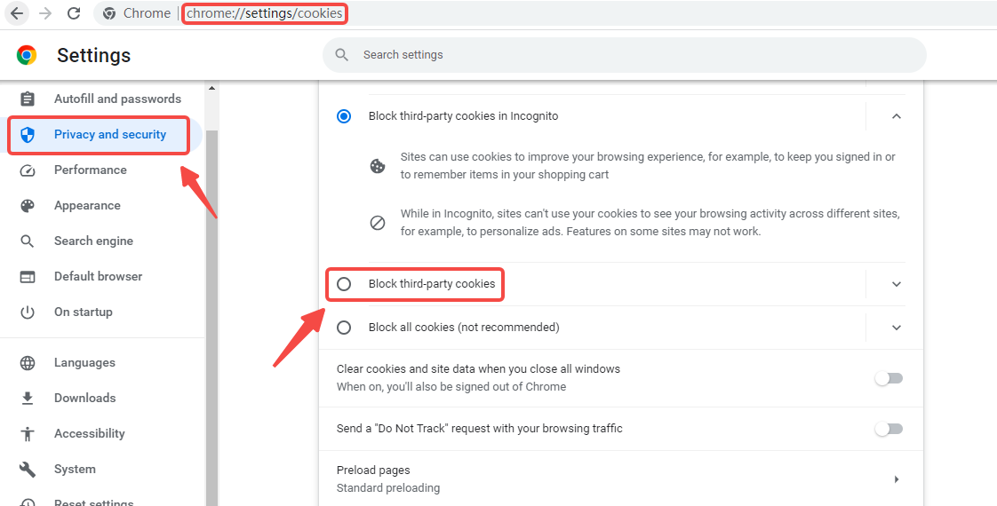 To check if you are blocking third-party cookies, enter "chrome://settings/content/cookies" in the browser's address bar and verify the status of third-party cookie blocking.