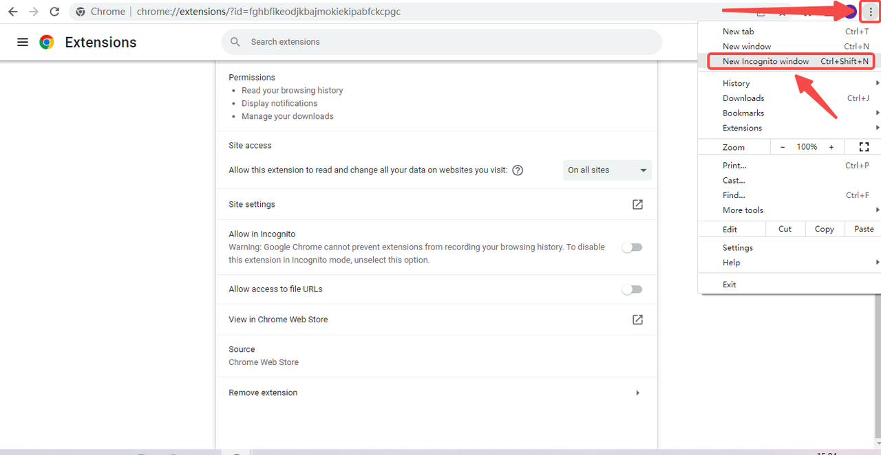 After enabling the AroundDeal Chrome Extension to run in incognito mode, open a new incognito window by clicking the three vertical dots and selecting "New Incognito Window." Log into Gmail or AroundDeal within the incognito window and test the functionality of the AroundDeal Chrome Extension. If it works properly, there may be a compatibility issue with another extension.