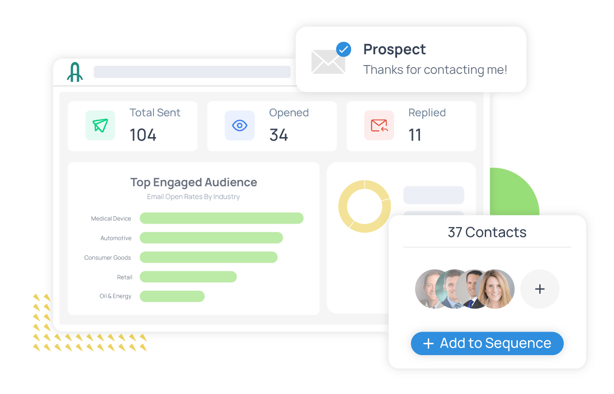 Our detailed analytics gives you a deeper understanding of your sales activities, like open rate, reply rate, click rate, and more, all instantly synced to your CRM. You can access real-time actionable insights to optimize your prospecting messages and timing. Remove the guesswork from your sales strategy.